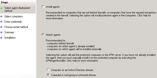 One of the greatest features of SCDPM 2010 is the ability to backup machines that are in a workgroup/DMZ/untrusted domain. This is good for example because some of my Hyper-V serveres are in the workgroup mode.