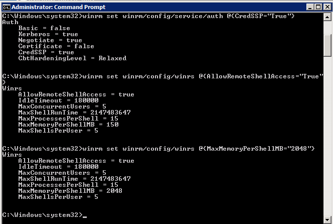 winrm set winrm/config/winrs @{MaxMemoryPerShellMB=”2048″}