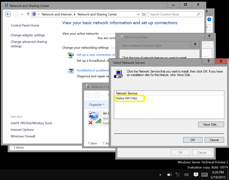 > Cloud, Microsoft, Virtualization > Solved: Wireless not connecting after installing Windows Server TP2