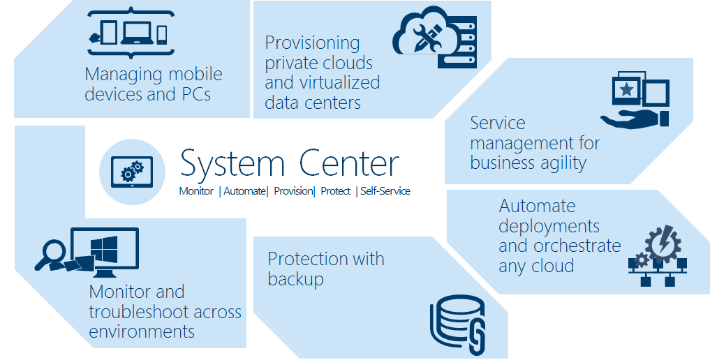 System Center 2016 will continue to speed time to value with new provisioning, monitoring and automation capabilities designed for your software-defined datacenter. Optimized for both traditional management and private cloud environments.
