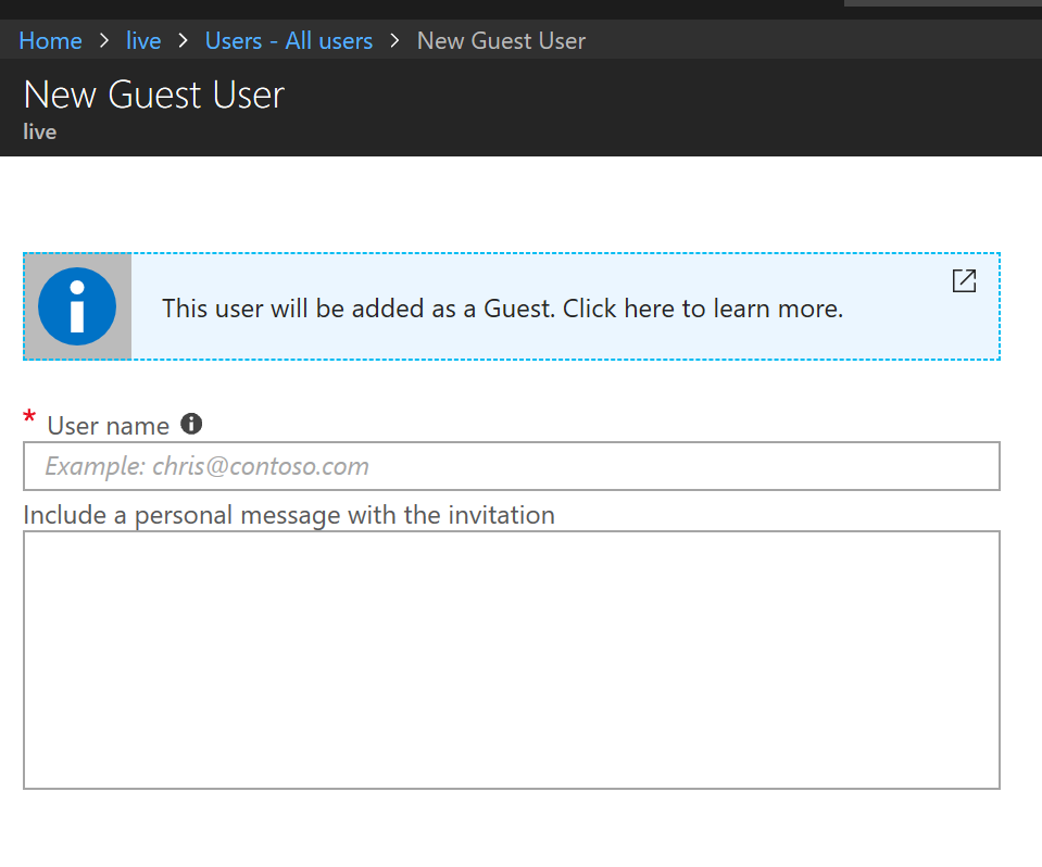 - You add them as a guest user to your organization (In the Azure Portal, go to Azure Active Directory -> Users -> New Guest User)