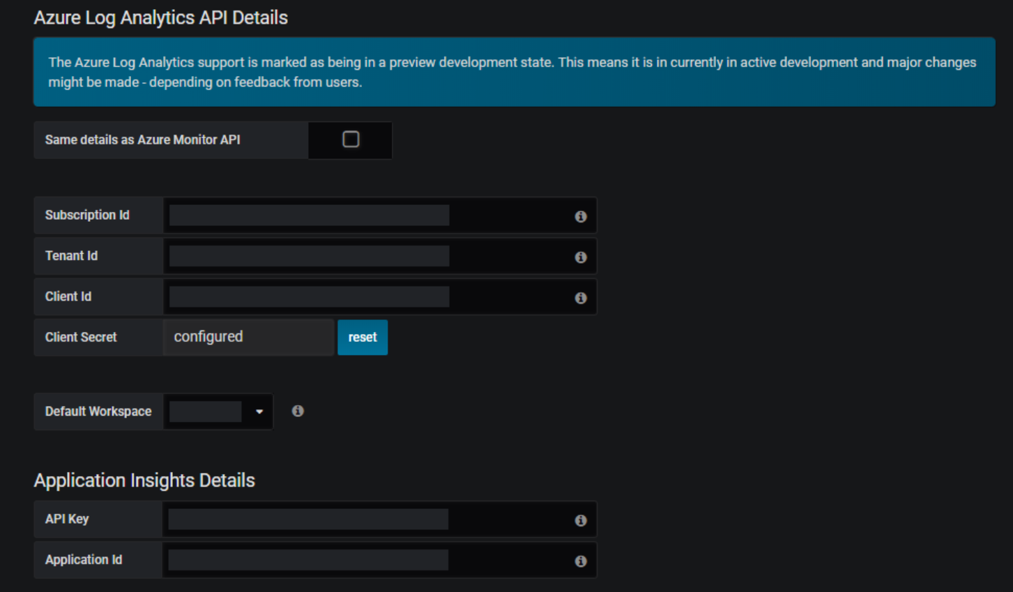 - Provide the connection details to the APIs and select Same details as Azure Monitor API
