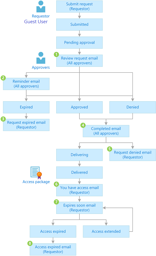 - Access request workflows, where you can configure different approval workflows for different groups of employees or guests who might request access.