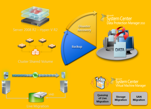 • Hyper-V Replica – Asynchronous, application-consistent virtual machine replication and it does not depend on any hardware vendor. You can establish an Hyper-V Replica between 2 separated physical locations without a storage. It permits asynchronous replication of Hyper-V virtual machines between two locations for business continuity and failure recovery.