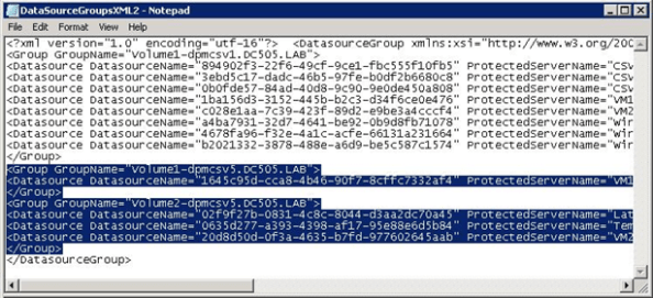 - Merge the DatasourceGroups.XML file for all CSVs protected by DPM server. This is applicable when software providers are used on the CSV cluster.